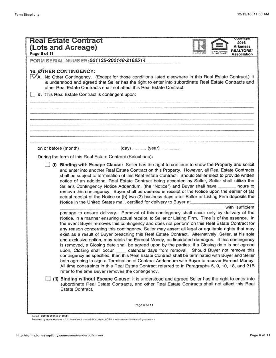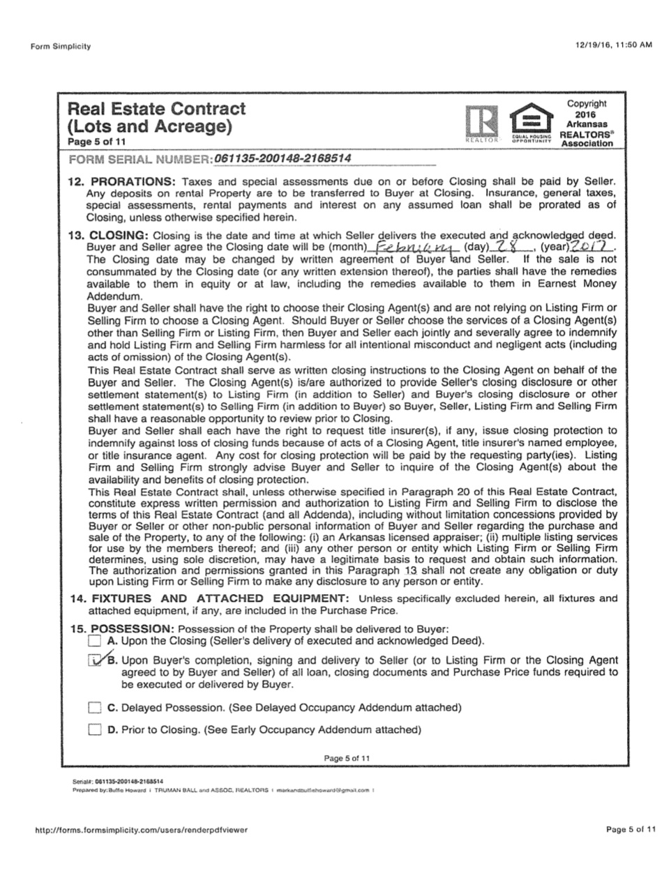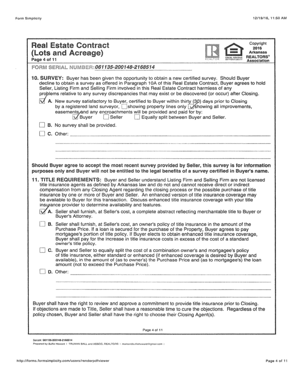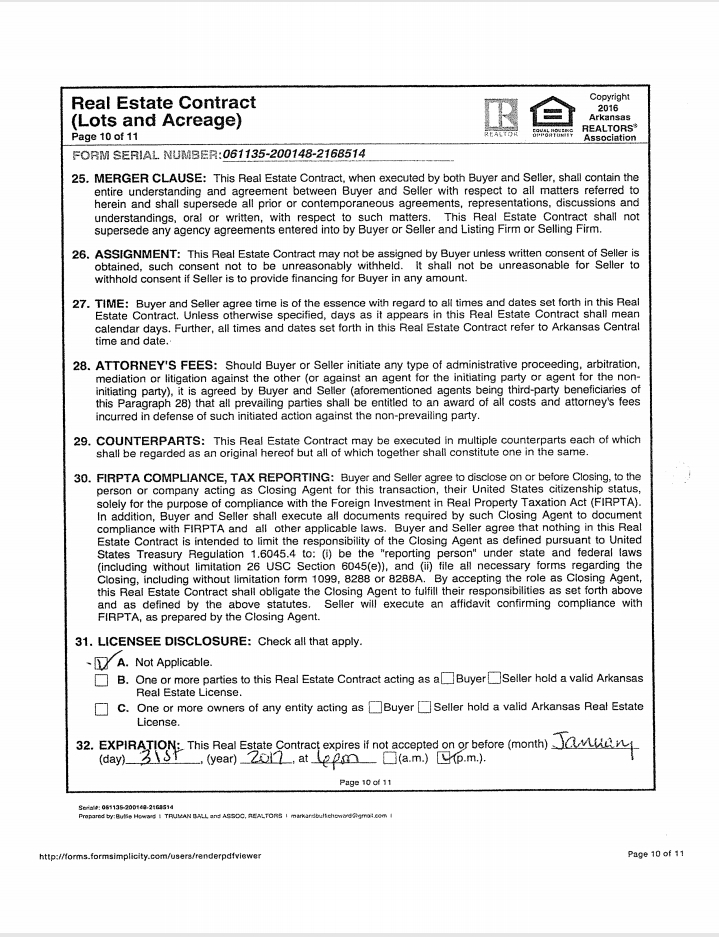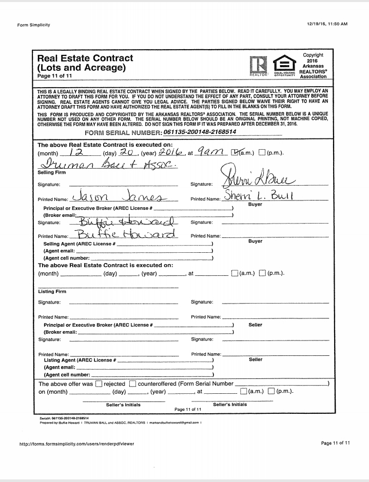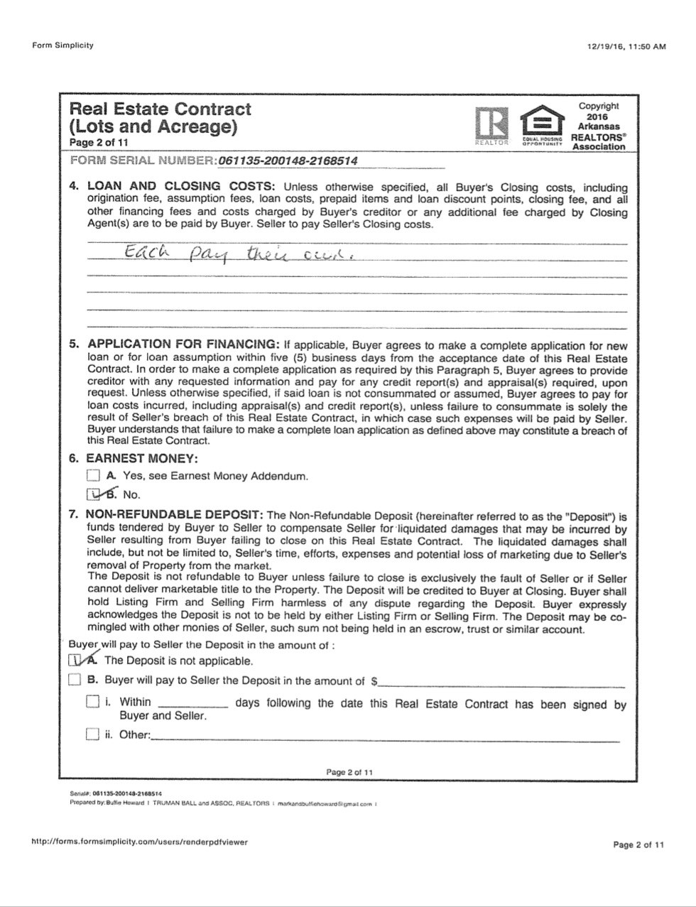 Mayberry sent via email a round of requested documents that included the real estate contract.