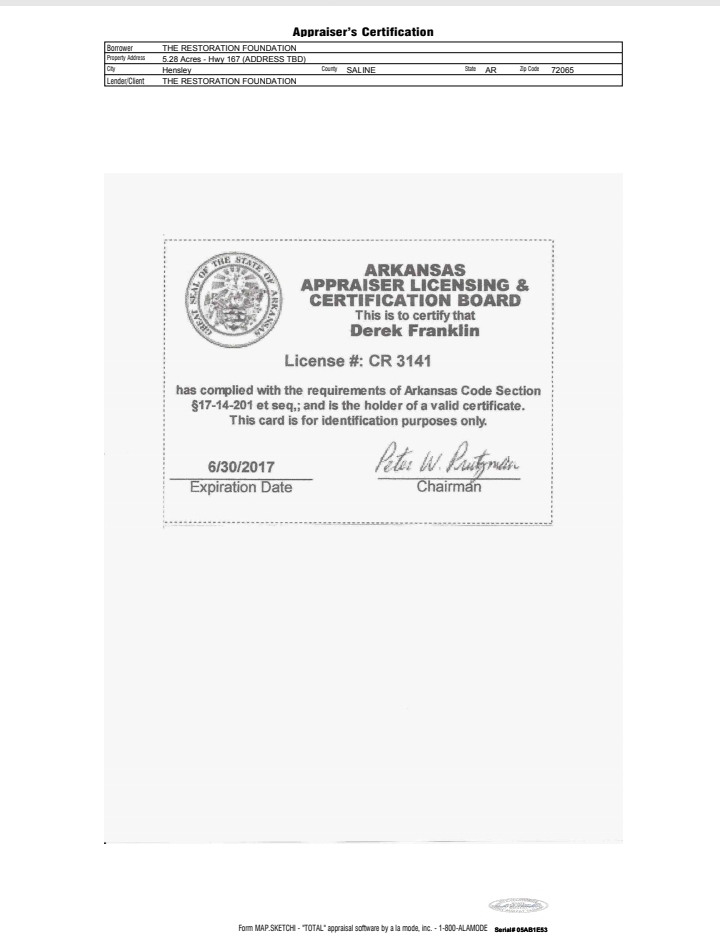 In the minutes the property location is unclear. Neither the board minutes or agendas mention the U.S. 167 real estate contract, its appraisal or a land transaction concerning 5.28 acres with The Restoration Foundation.