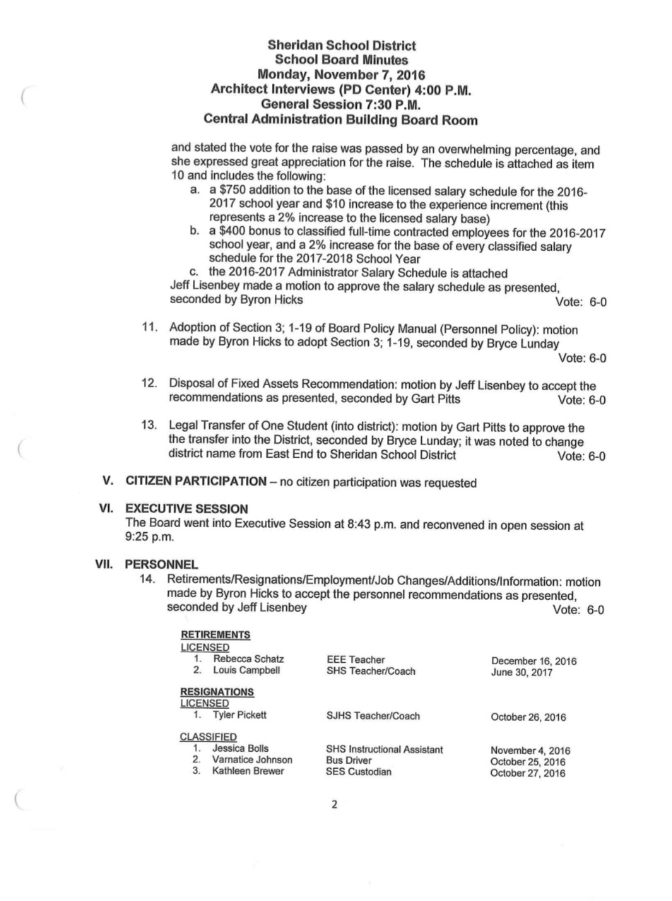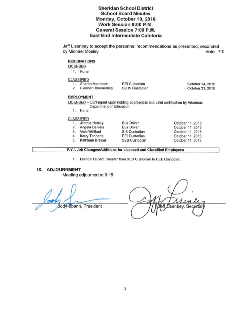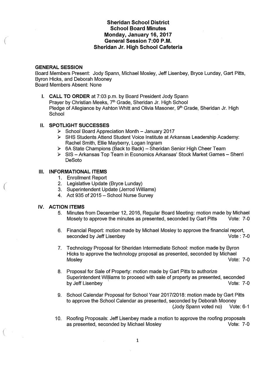 The next day, Jan. 16, 2017, the school board held its regular meeting. All board members were present.
