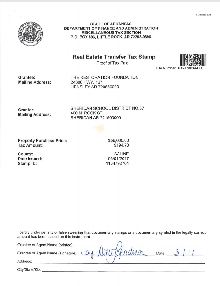 According to the Arkansas secretary of state’s website, The Restoration Foundation is a domestic nonprofit corporation incorporated on Sept. 12, 2016. Its registered agent is Craig Manatt, CEO of Peoples Bank in Sheridan.