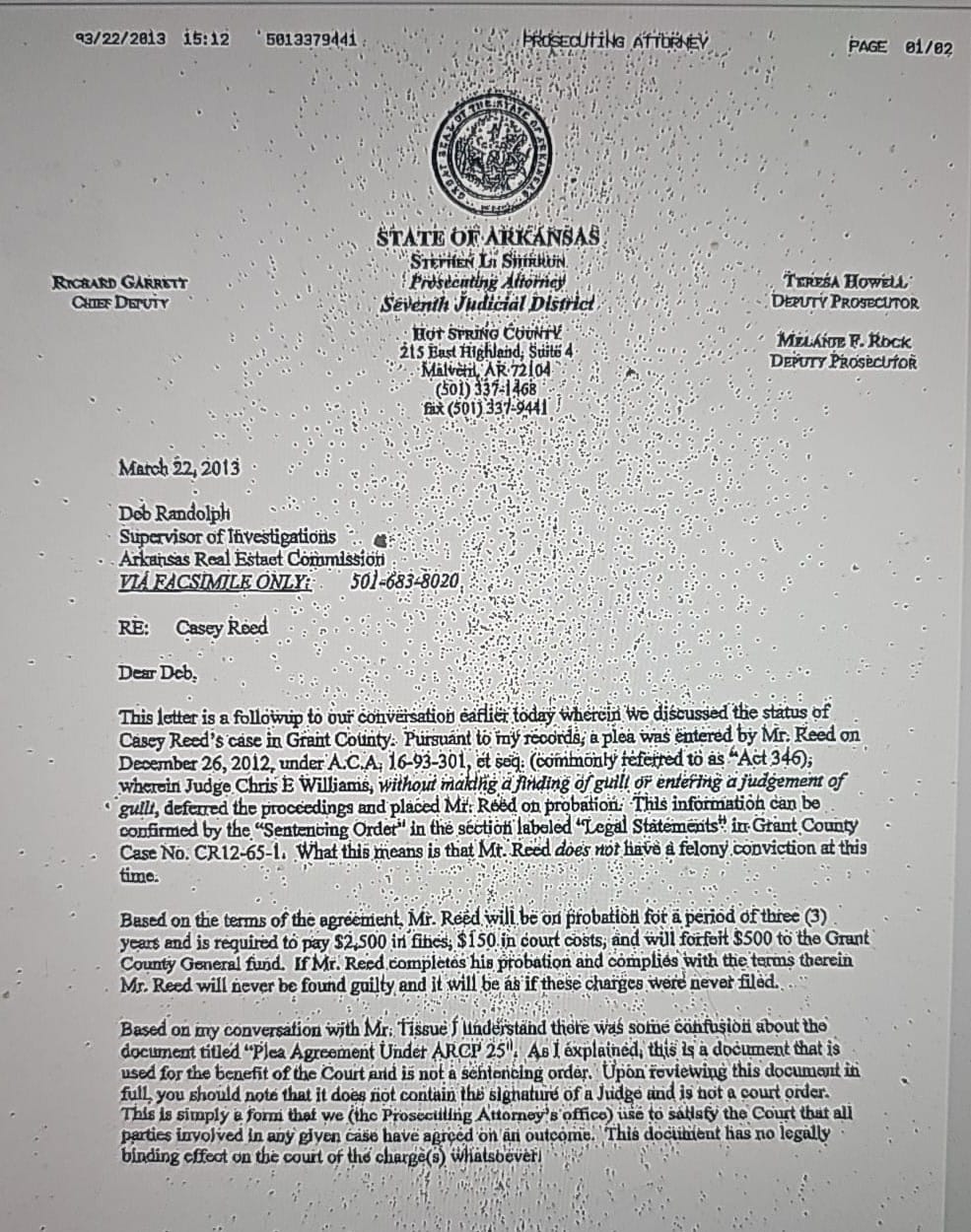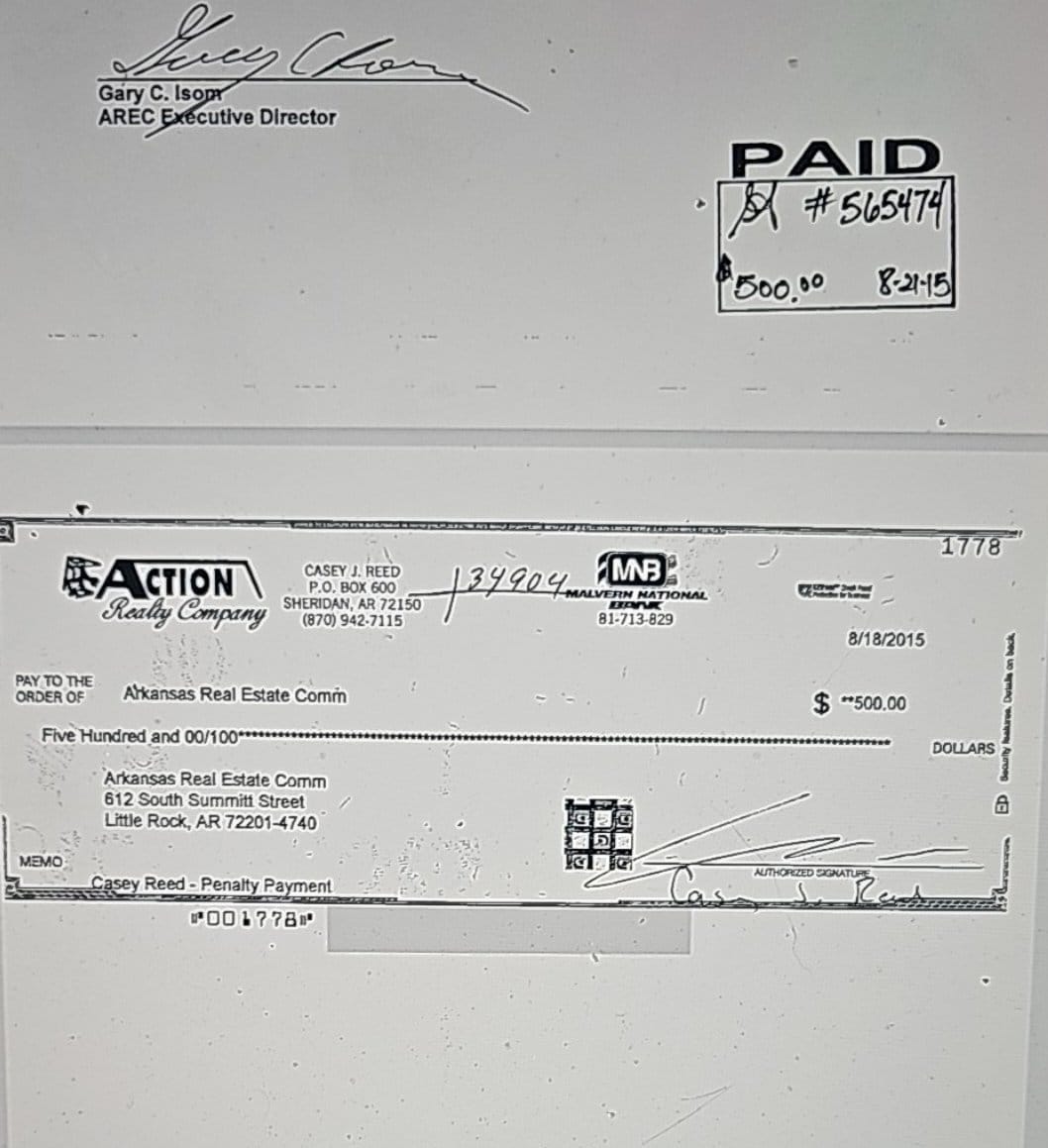 That attachment was a page from a March 2017 Real Estate Commission newsletter citing where Reed paid $500 for failing to tell the Commission about his 2012 plea.