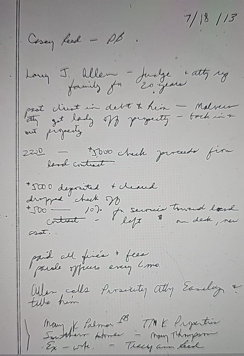 Reed told the Reckoning he dropped off a $500 check to Allen for legal work to help a man he had only met once and left a note on Allen's desk.