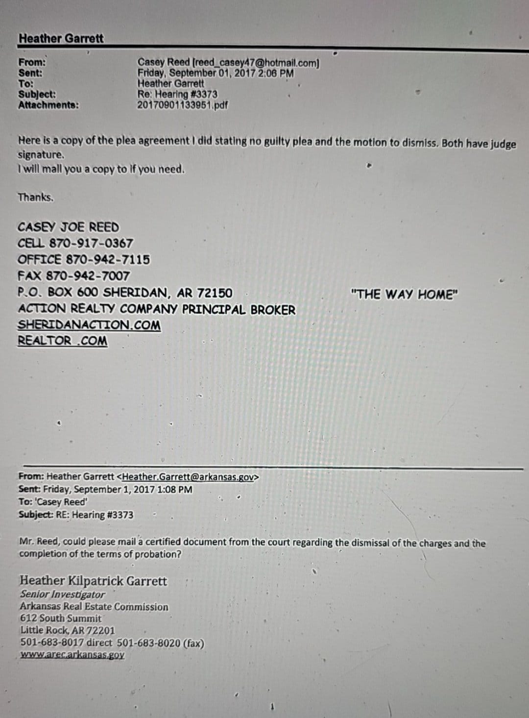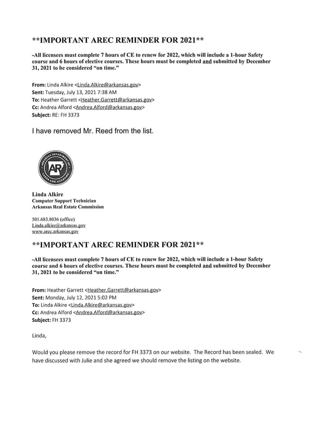 Documents show that as early as 2017 Reed started trying to seal his record with the Real Estate Commission.