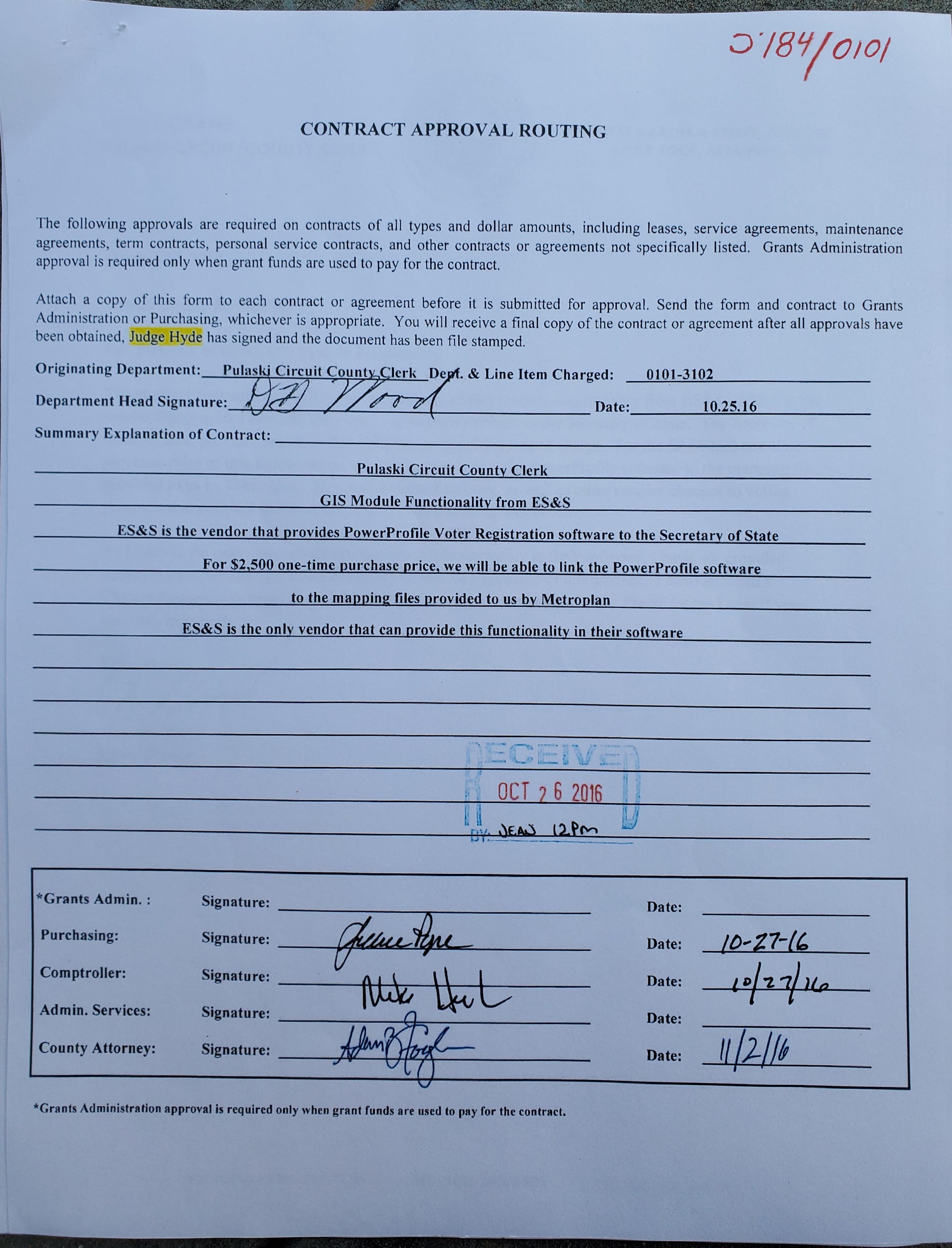 The Reckoning obtained a 2016 contract and related documents between Pulaski County and Election Systems & Software (ES&S), a popular U.S. election service provider.