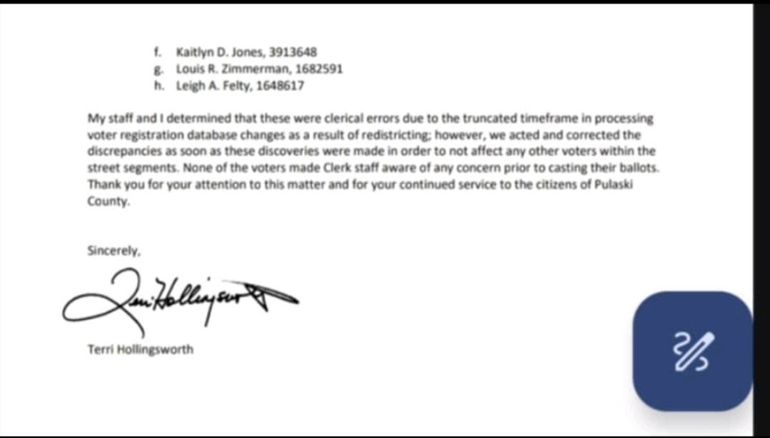 Pulaski County Circuit and County Clerk Terri Hollingsworth is no stranger to precinct data issues during elections, according to a 2022 document obtained by the Reckoning.