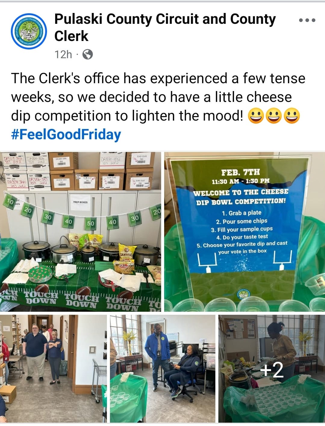 According to the Pulaski County Clerk's Facebook page on Friday, Feb. 7, a post stated the office “has experienced a few tense weeks.” So they had a party.