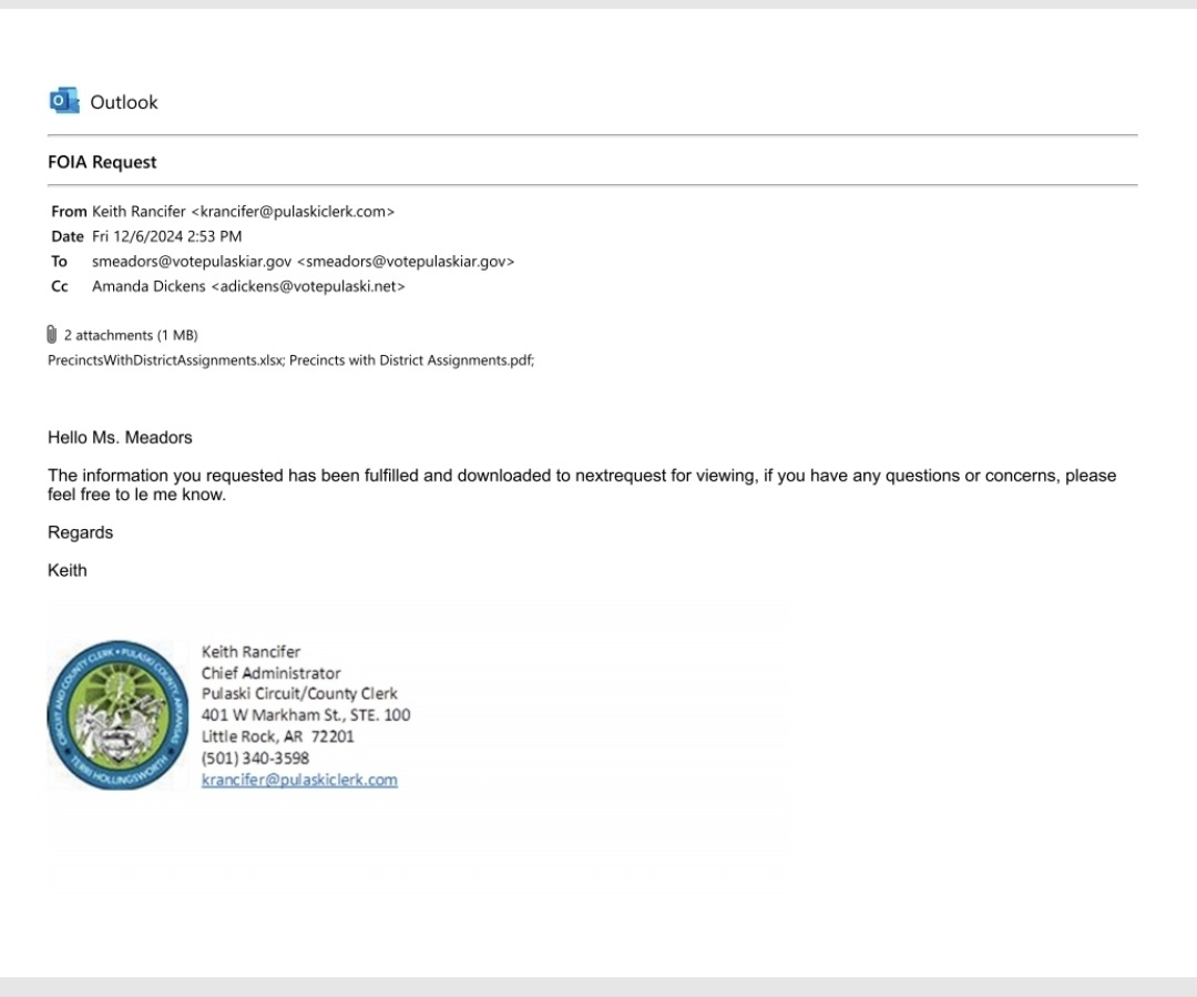 The Reckoning's original request was to view all information in-person to review each time any Pulaski County employee accessed the voter precinct system and to document any other changes, if any exist. To date, the Reckoning has not been able to review that information.