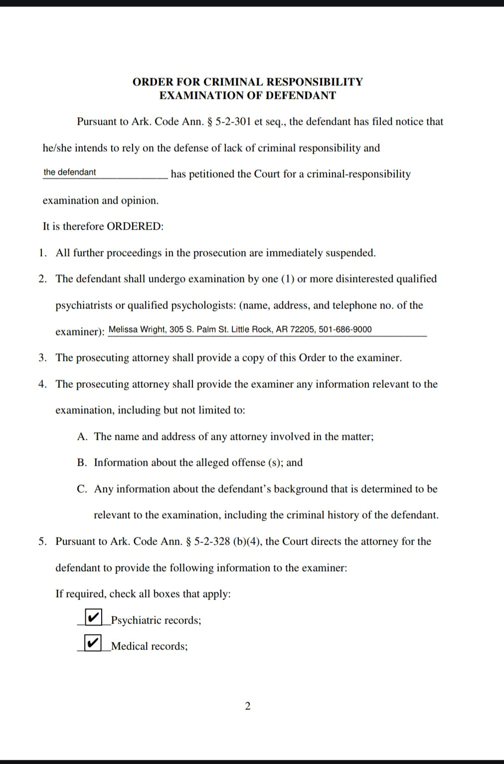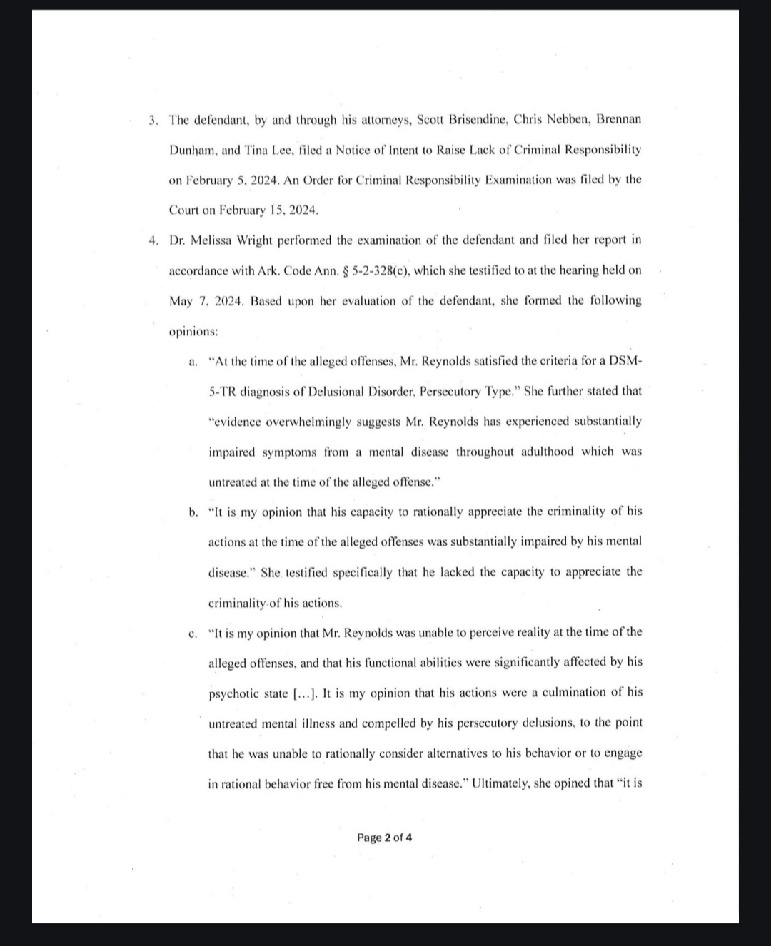 On Feb. 5, Reynolds’ attorney filed a “Notice Intent to Raise Lack of Criminal Responsibility.” Under Arkansas law, the filing of this notice immediately suspended further proceedings in the prosecution.