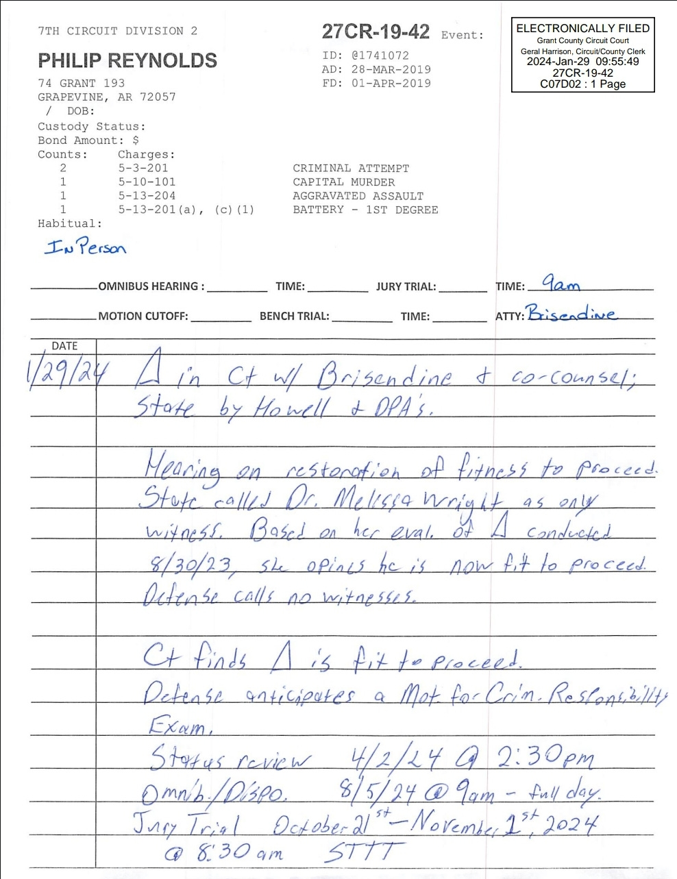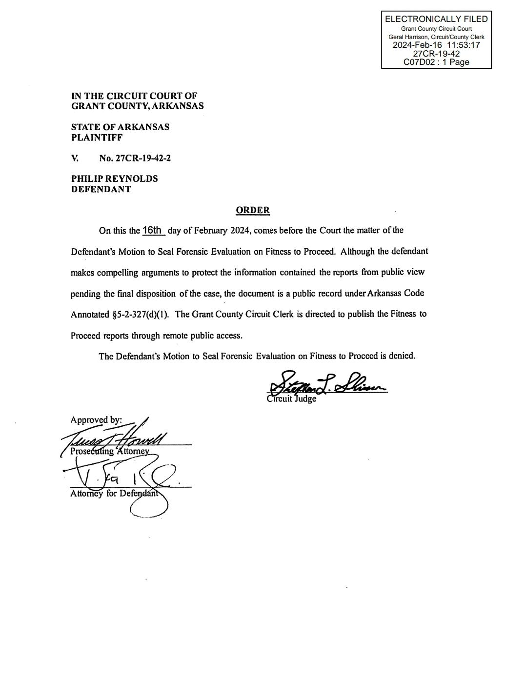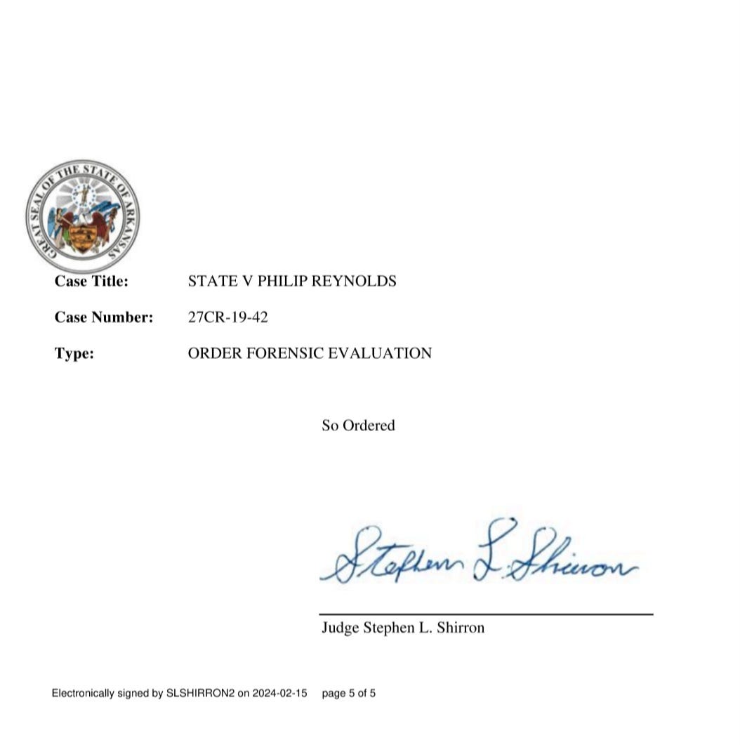 Throughout 2022 and into 2023, Reynolds’ attorney and the prosecuting attorney’s office on behalf of the state of Arkansas continued to file motions and counter motions as Reynolds went through more psychological evaluations.