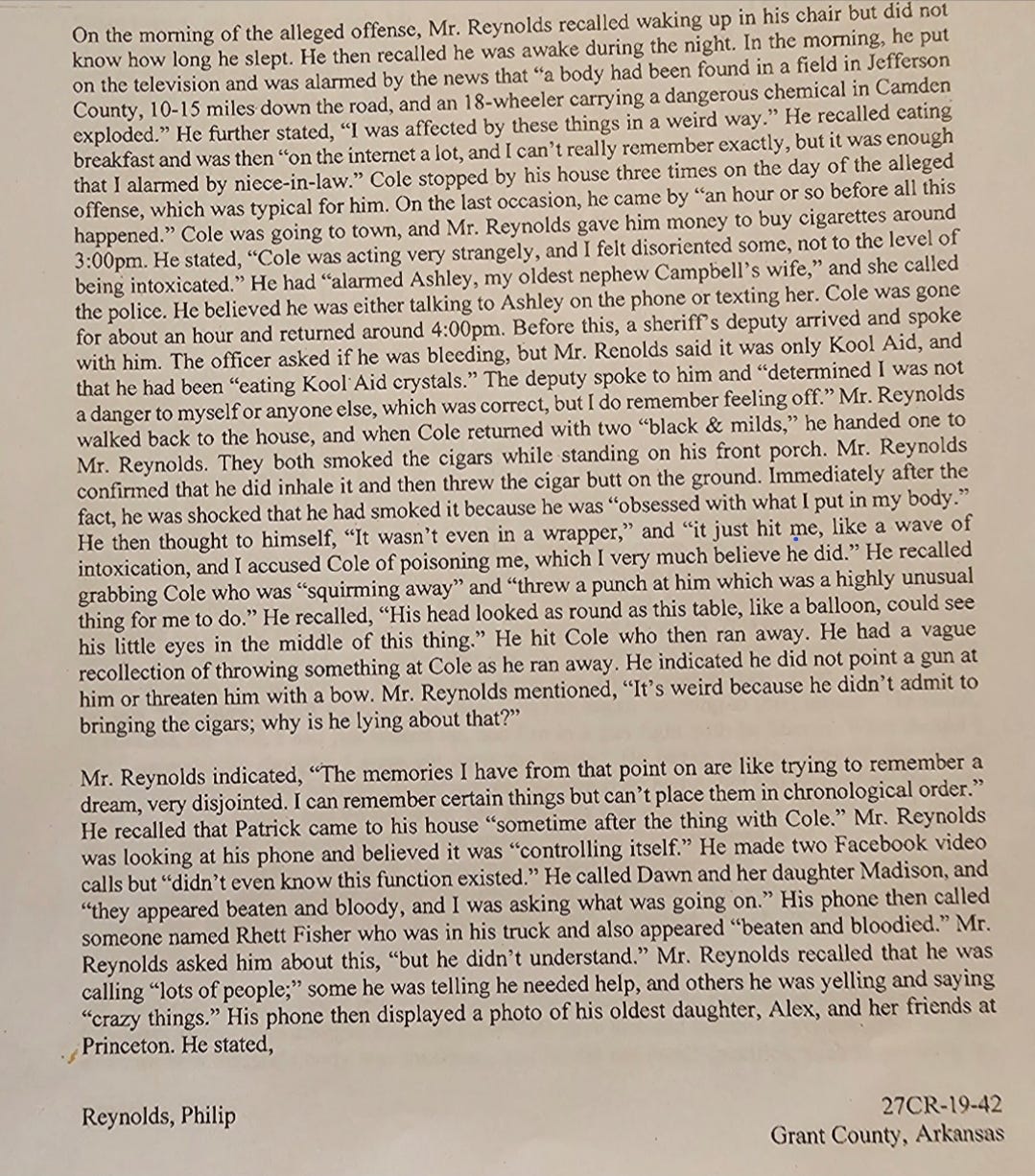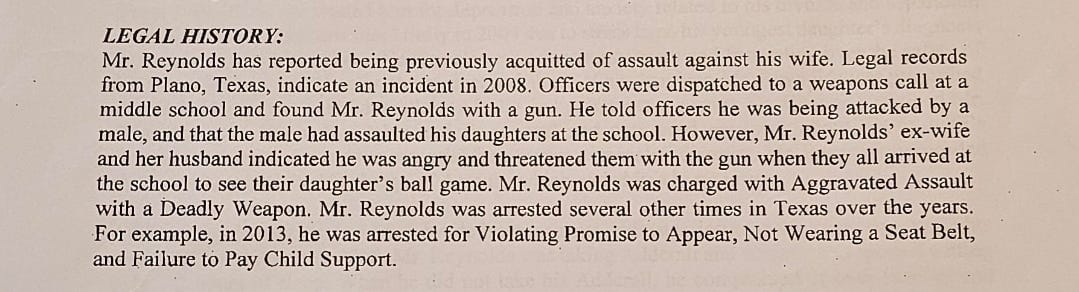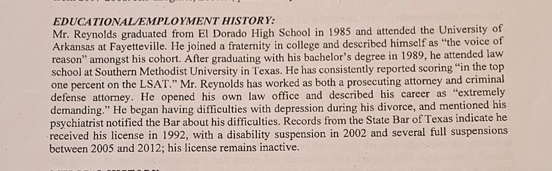 Reynolds, now 56, was born in El Dorado and spent his first four years in Crossett before his family returned to El Dorado. In a psychological evaluation, obtained by South Arkansas Reckoning, Reynolds talked about being “shipped off” to his paternal grandparents’ house in Sheridan during summers.