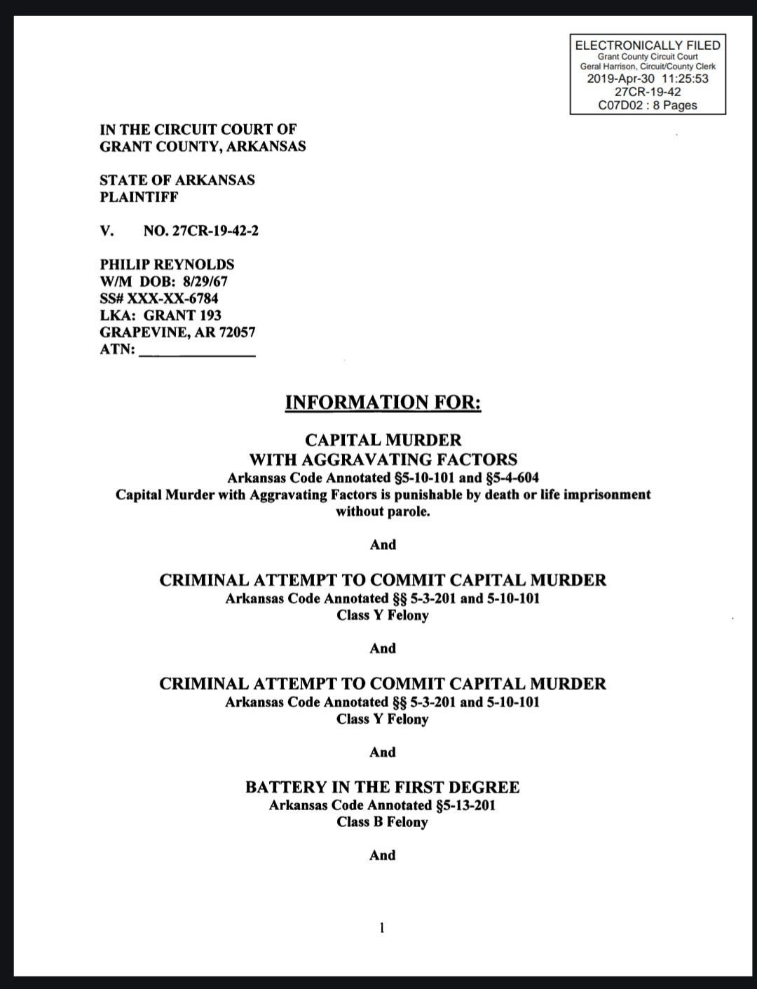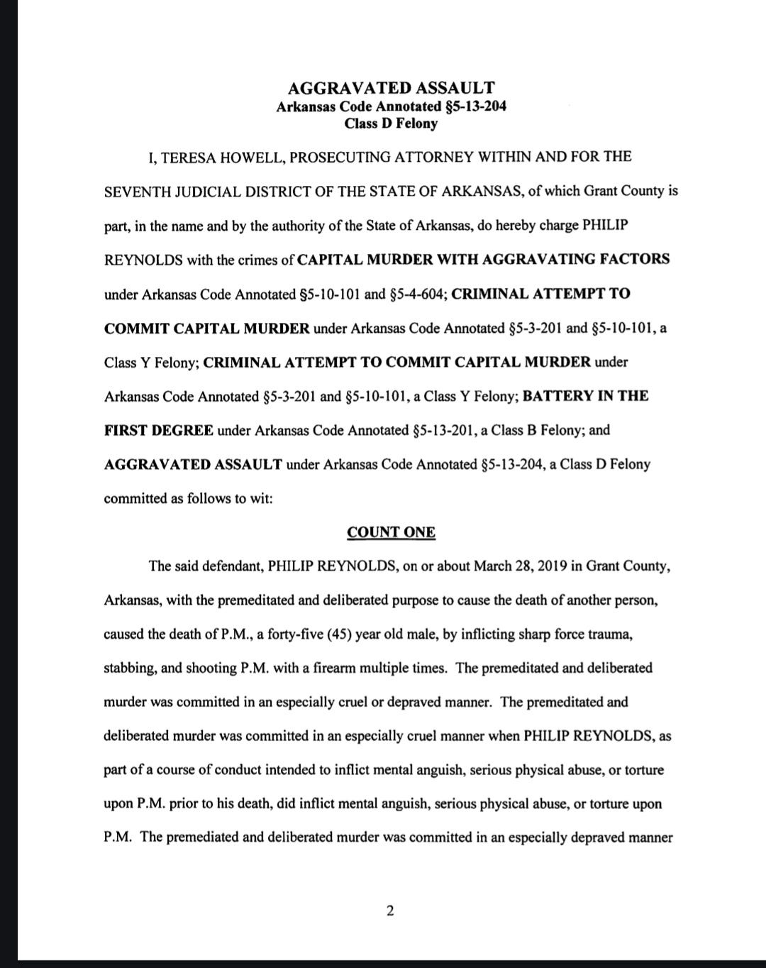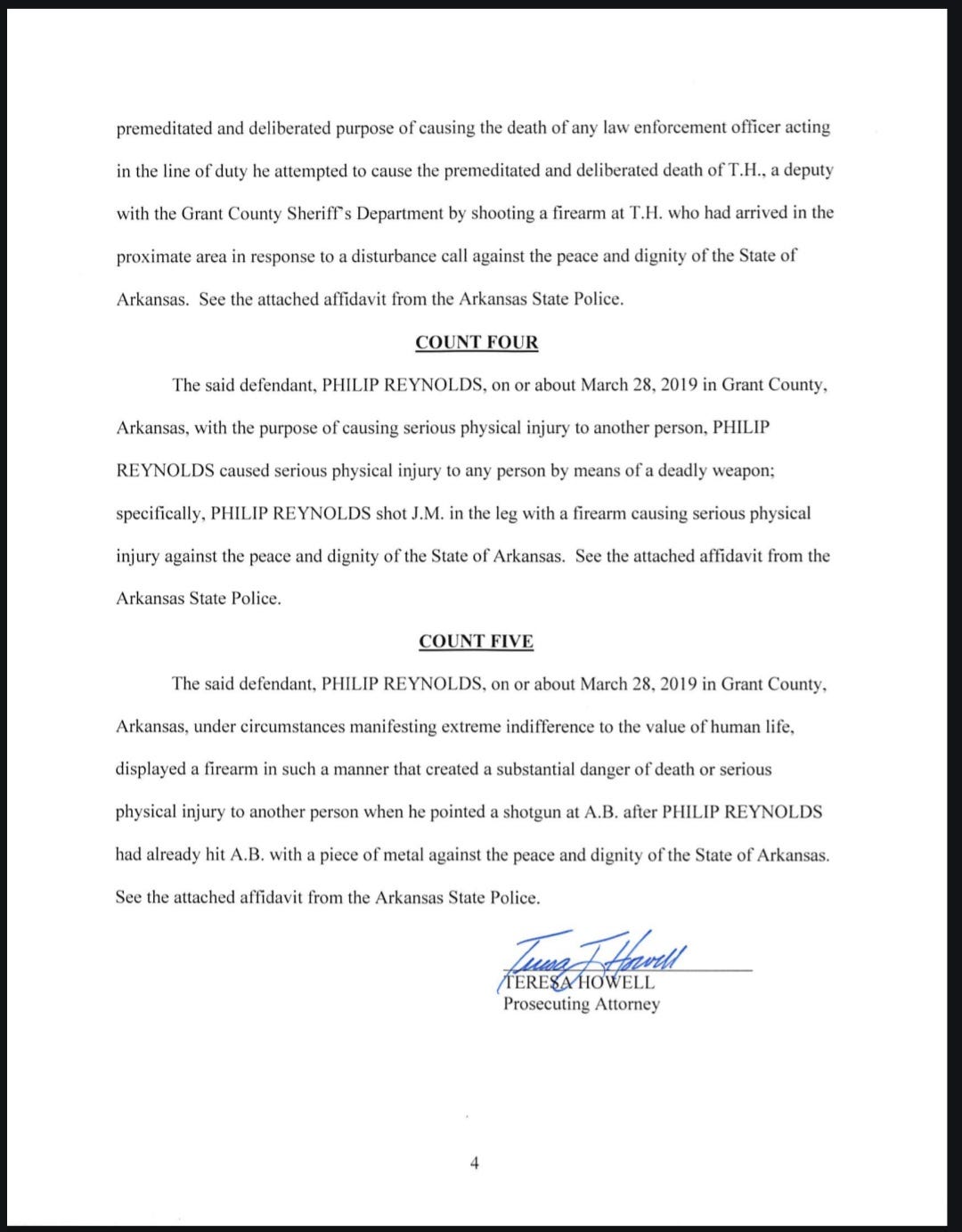 An eight-page document filed in the Grant County Courthouse on April 30, 2019, by Prosecuting Attorney Teresa Howell explains Reynolds’ charges.