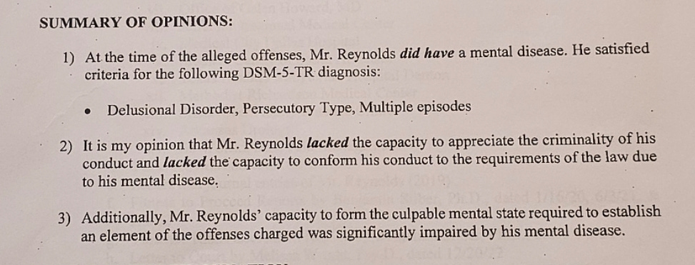 From April 2019 until March 15, 2024, Reynolds underwent several psychological evaluations often centered on two questions: Was Reynolds mentally fit to stand trial? Was he a danger to himself and others?
