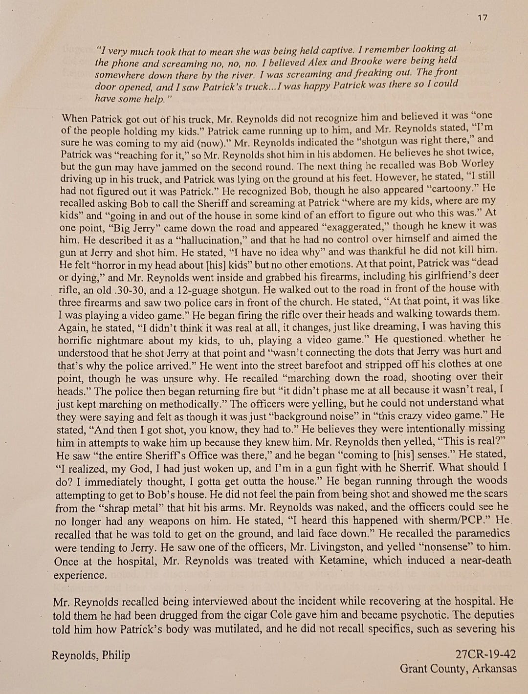 Read Reynolds account of that day, according to the interview, that includes his explanation of shooting at officers and stripping off his clothes. He said, “I can remember certain things but can't put them in chronological order.”
