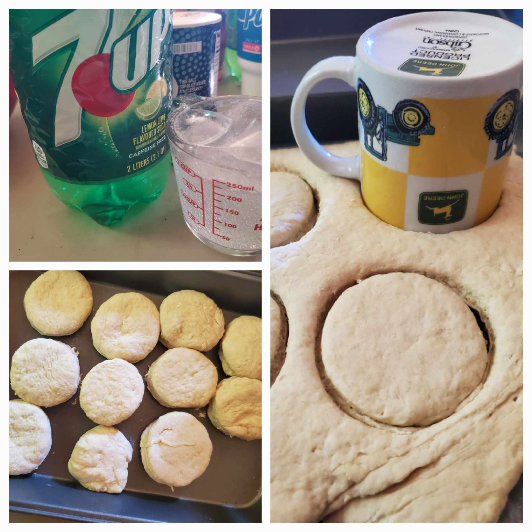 Spread your dough out. Grab a coffee cup and start cutting out ¾-inch thick biscuits until you are done — usually 11 or 12 biscuits are the result.