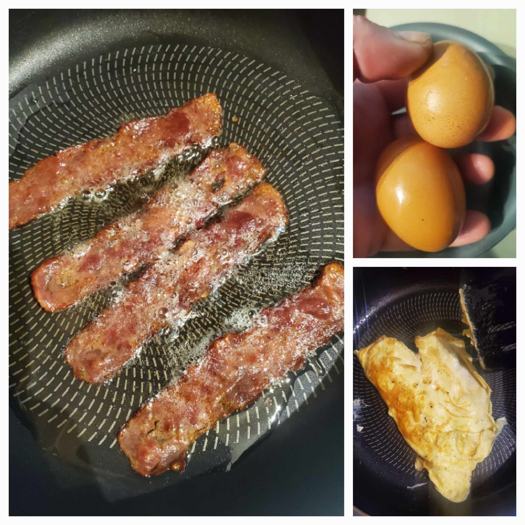 We have our own flock of Rhode Island Red chickens so eggs around here aren’t hard to come by. Two scrambled eggs will be more than enough egg for FOUR bacon egg and cheese biscuits.