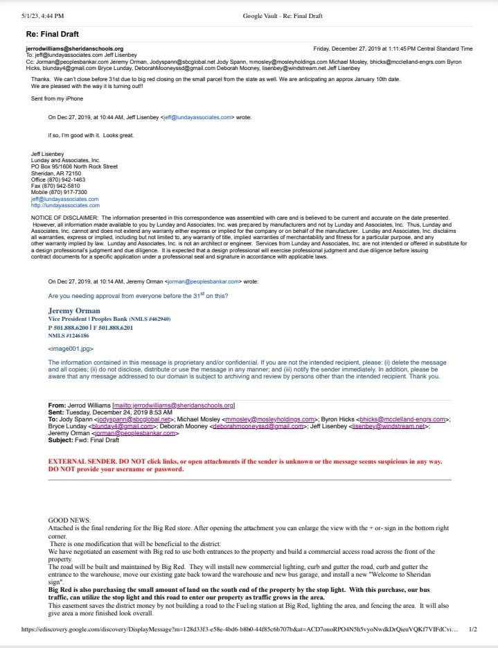 Through the Arkansas Freedom of Information Act, we obtained emails that indicate Williams lacked proper board authorization at the time of the transaction.