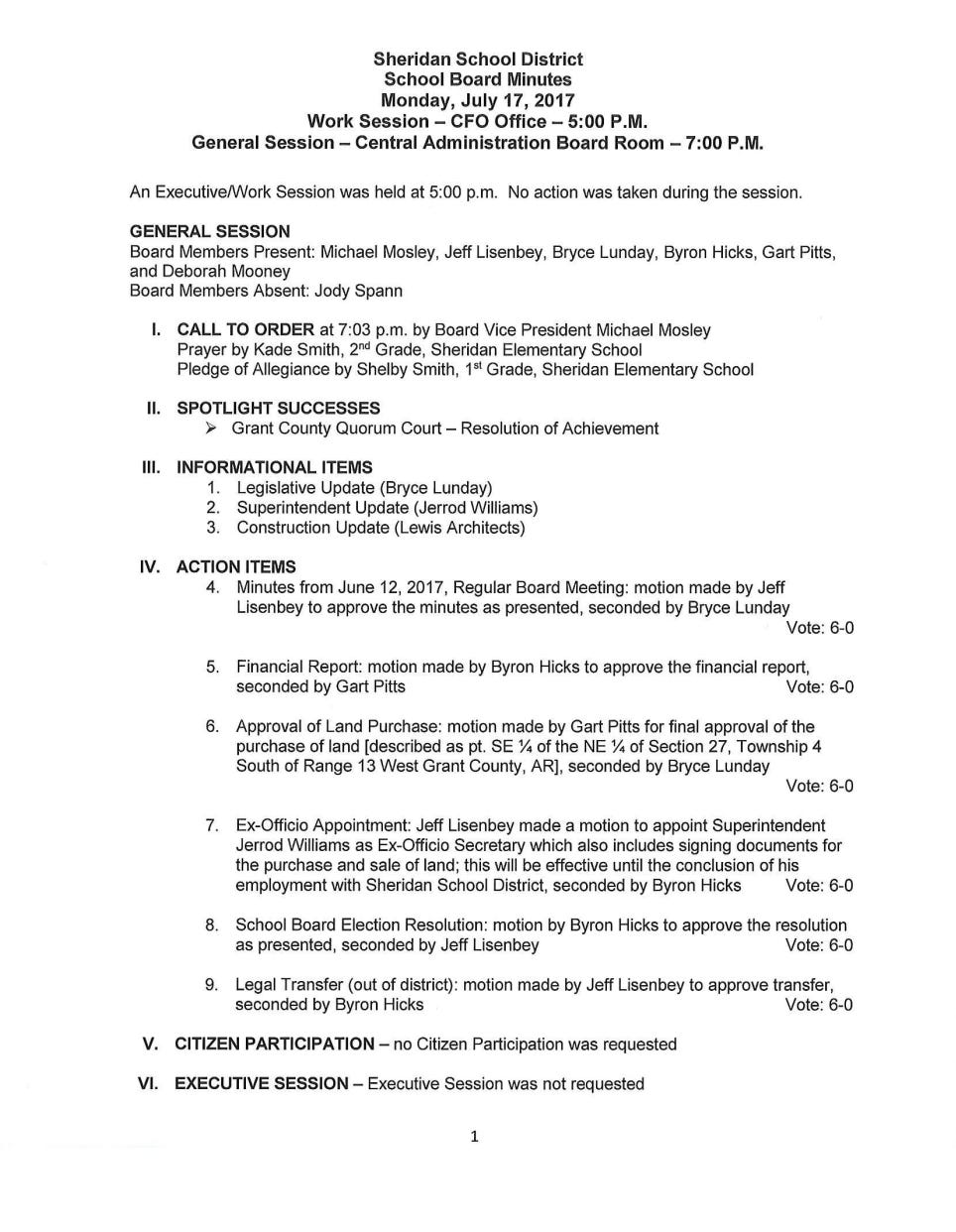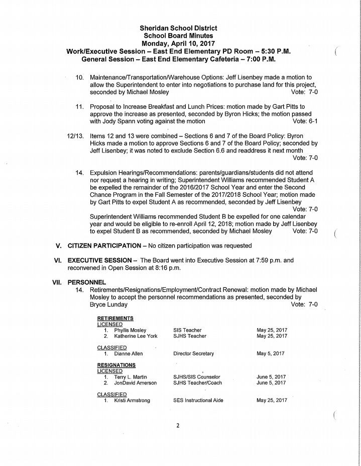 In the next month’s — July 2017 — regular school board meeting, the school board authorized the purchase of the property.