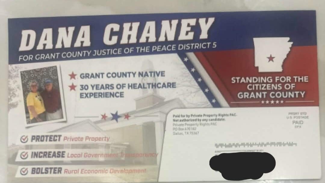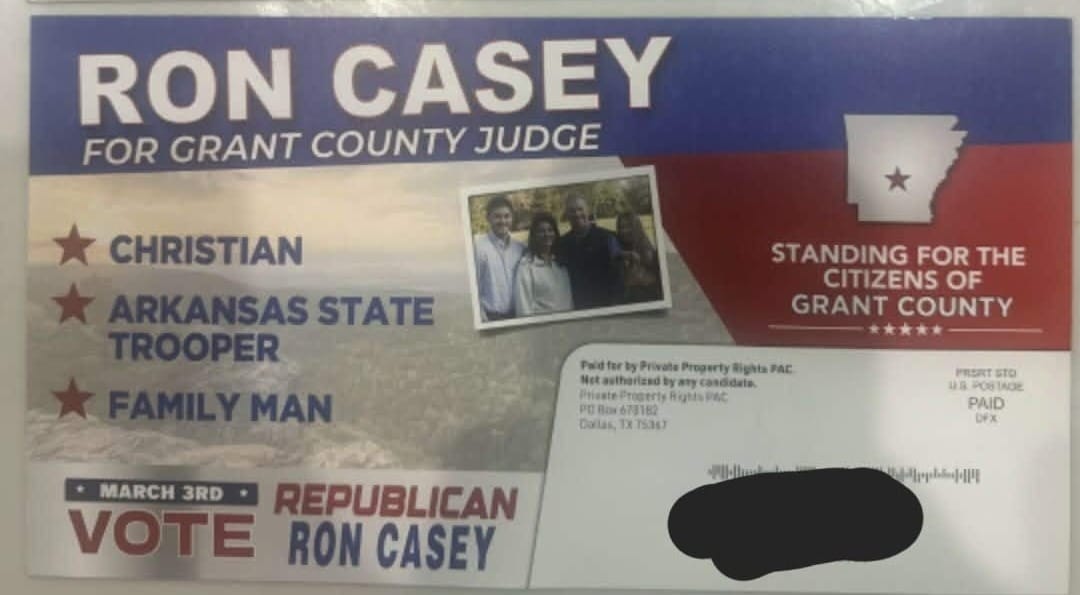 Grant County residents recently received two mailers from an organization supporting Ron Casey for county judge and Dana Chaney for Justice of the Peace.