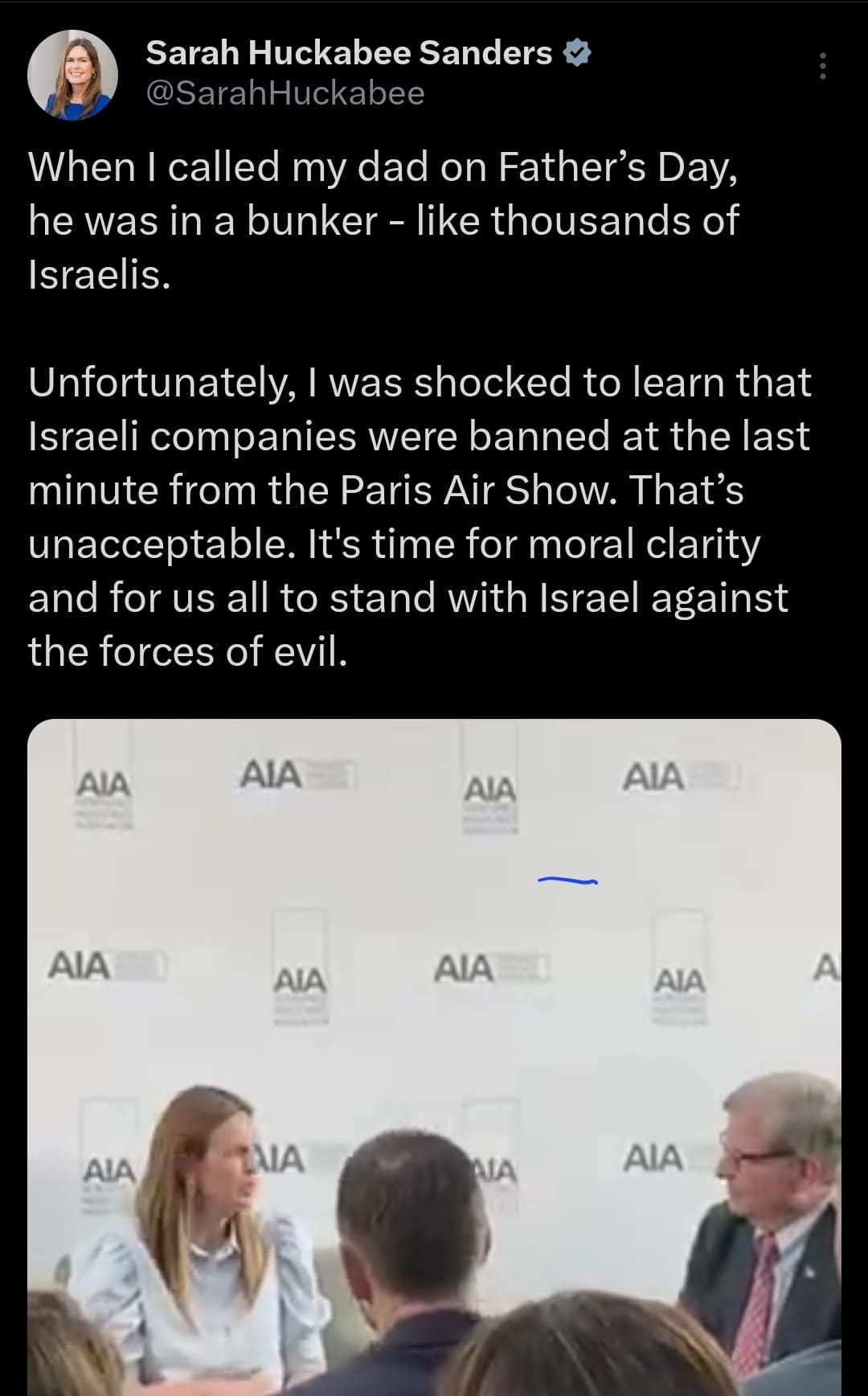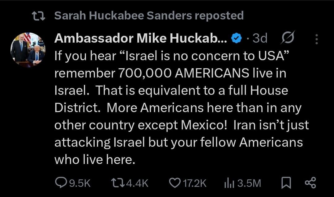 Sanders also reposted a post from her father about Israel, reminding people that 700,000 Americans live in Israel.