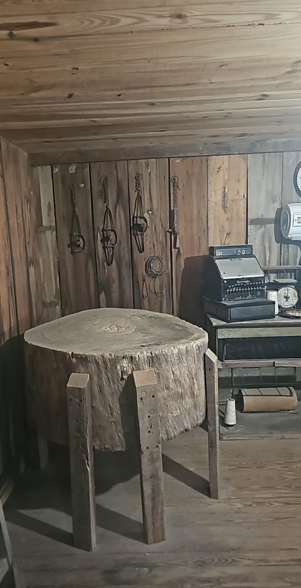 Round cutting blocks made from cuts of giant logs are a reminder of the simple way life long ago.