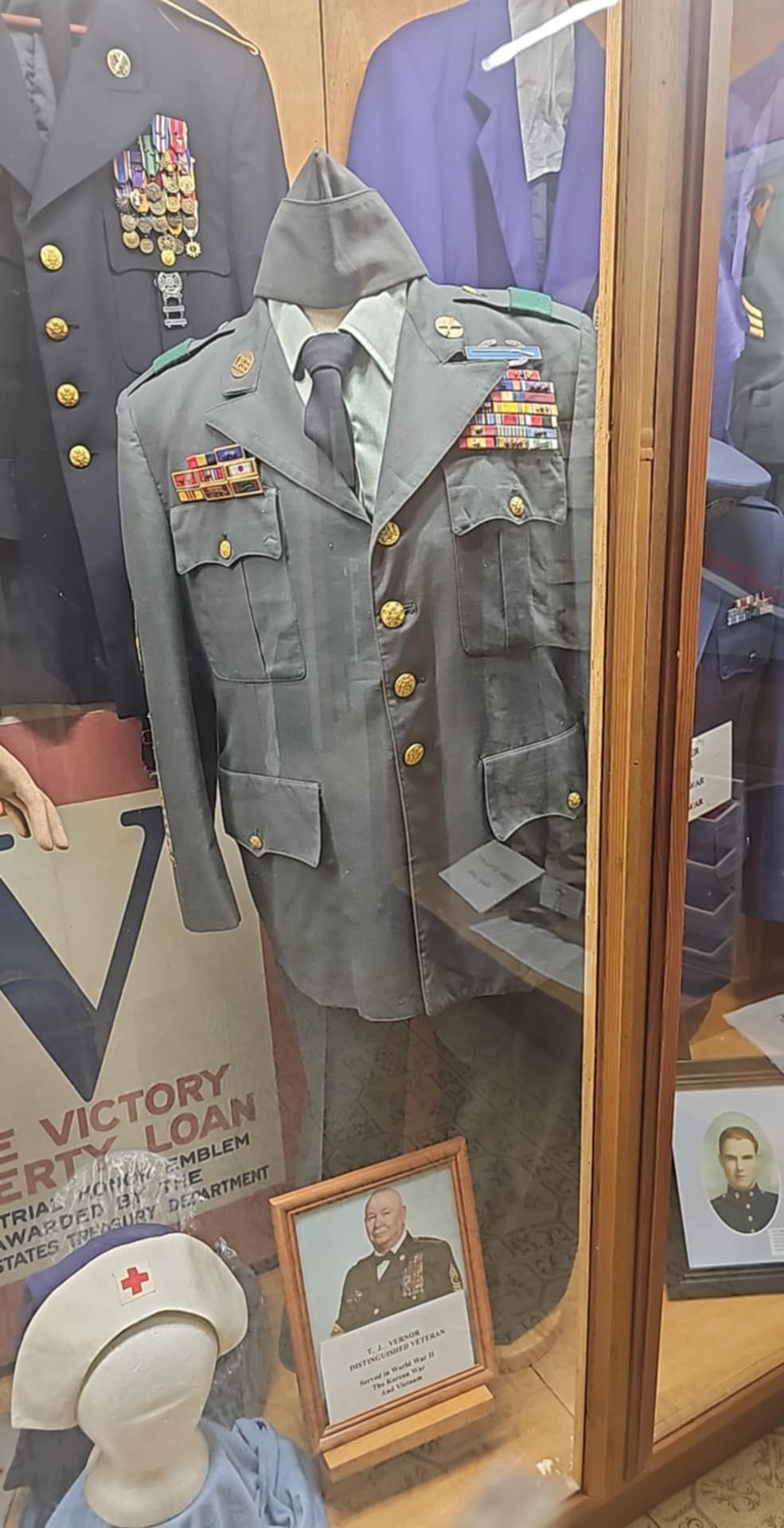 One highly dedicated uniform shows the steadfast commitment of T.J. Vernor who served in WWII, the Korean War and Vietnam. No doubt an Arkansas hero.